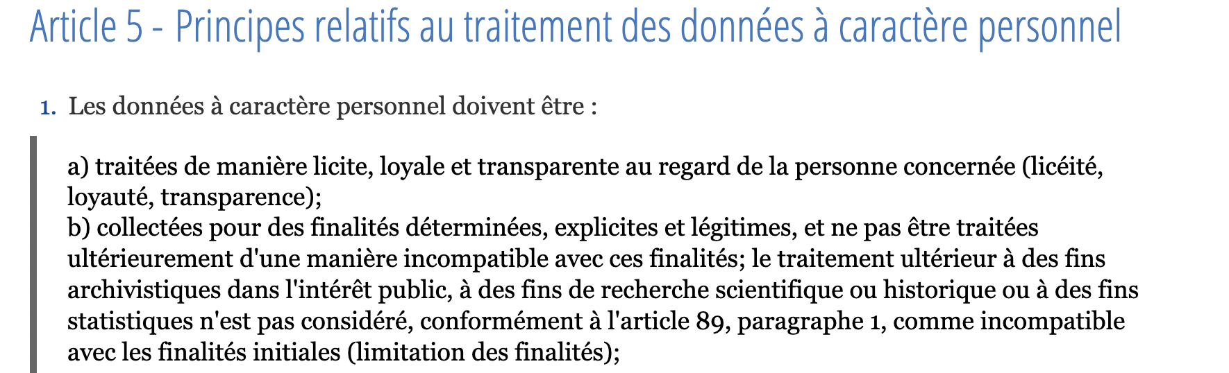 En vertu de ces dispositions, tout traitement de données doit être mené de manière loyale, transparente et documentée.